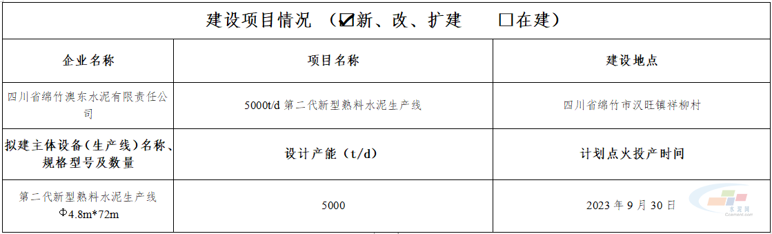 關(guān)于四川省澳東水泥5000t/d水泥熟料生產(chǎn)線(xiàn)智能化升級(jí)改造項(xiàng)目有關(guān)情況的公示
